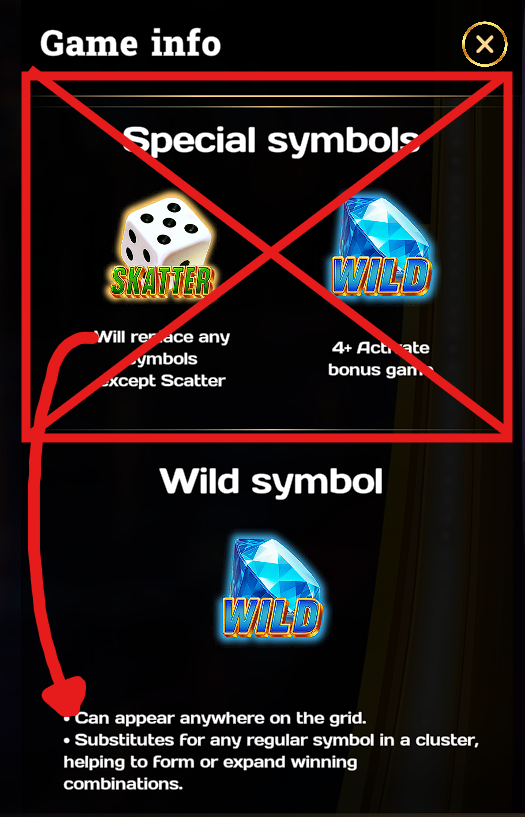 - Нужно вырезать повторяющийся бок про скаттер и вайлд из инфо справки